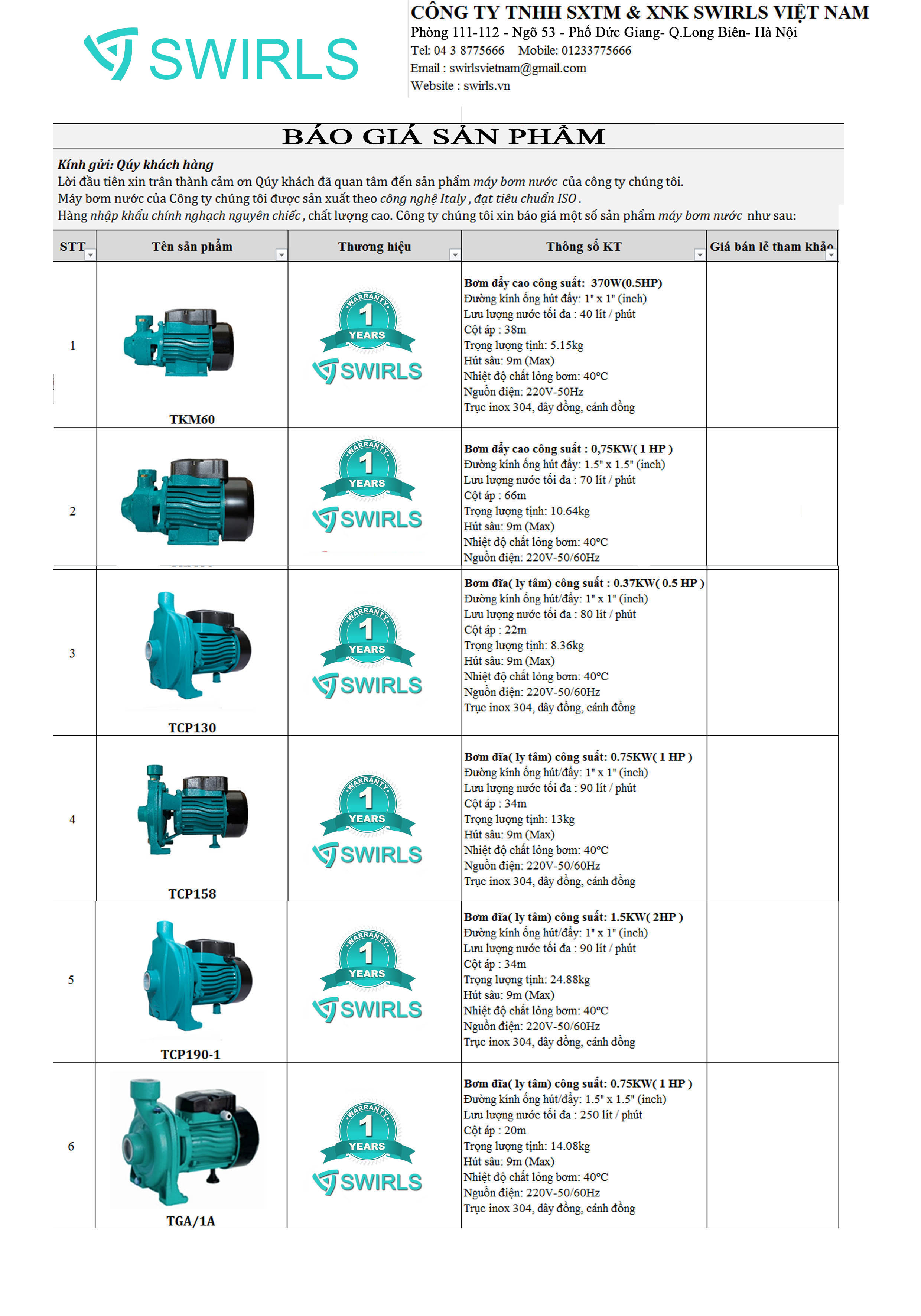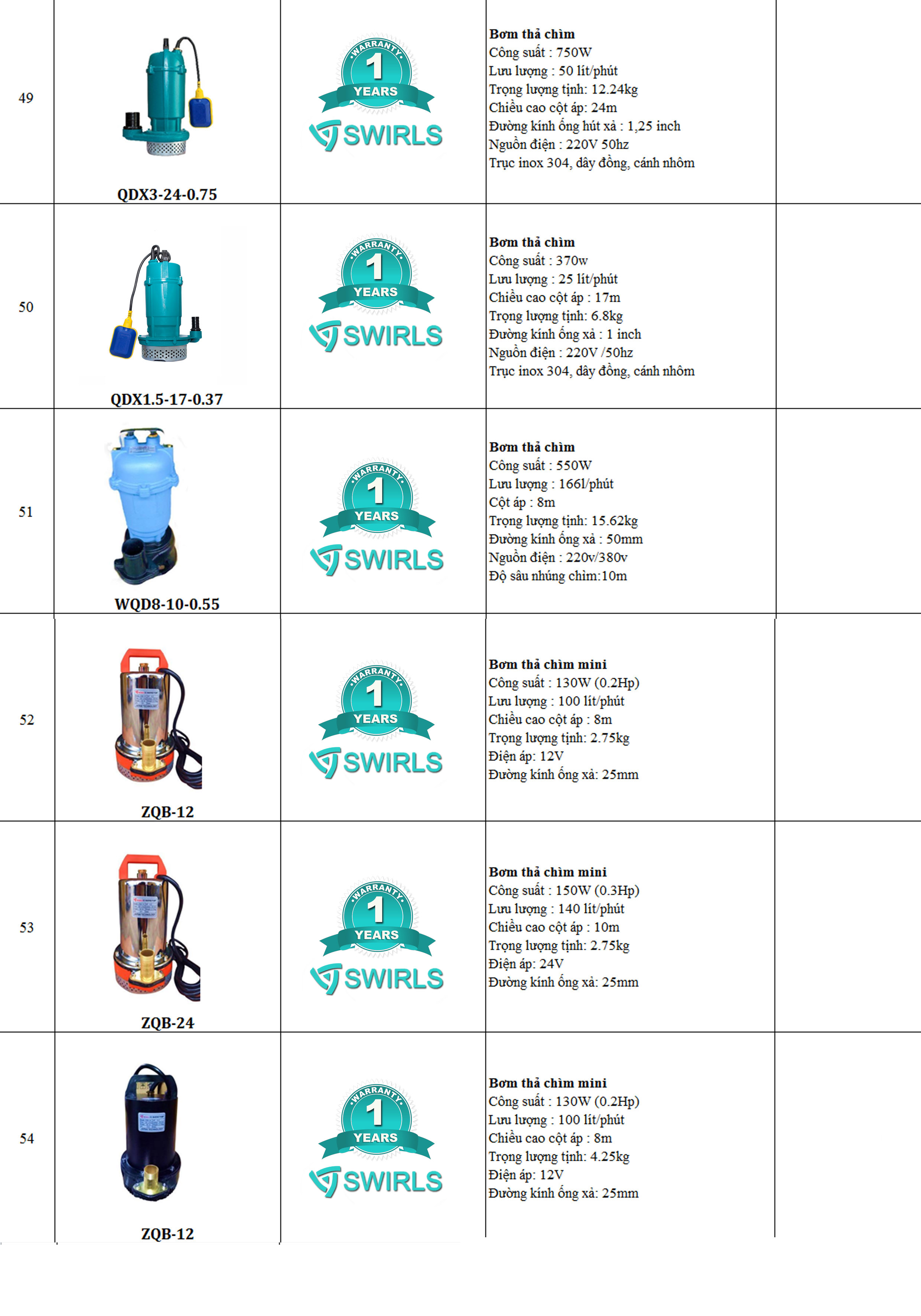 Catalog Sản Phẩm Bơm Nước Swirls